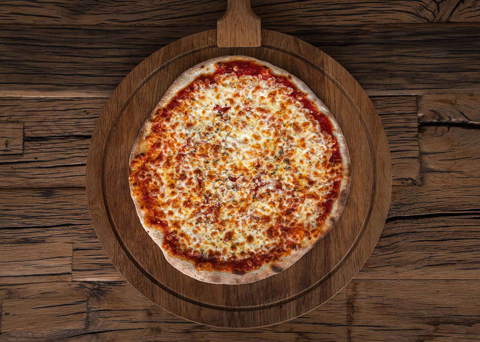 tomatensaus, mozzarella, gorgonzola, geitenkaas, emmental